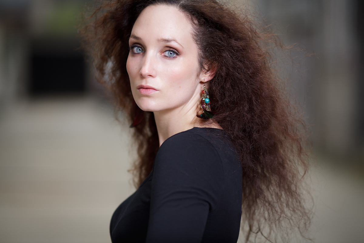 Le premier flash (dans une softbox) était sur ma gauche comme key light et le second flash était placé à l’arrière comme rim light. C’est un setup assez classique mais qui met bien en valeur les cheveux de Marie sur cette image (on peut d’ailleurs se rendre compte de la différence par rapport à la photo qui suit sans rim light).